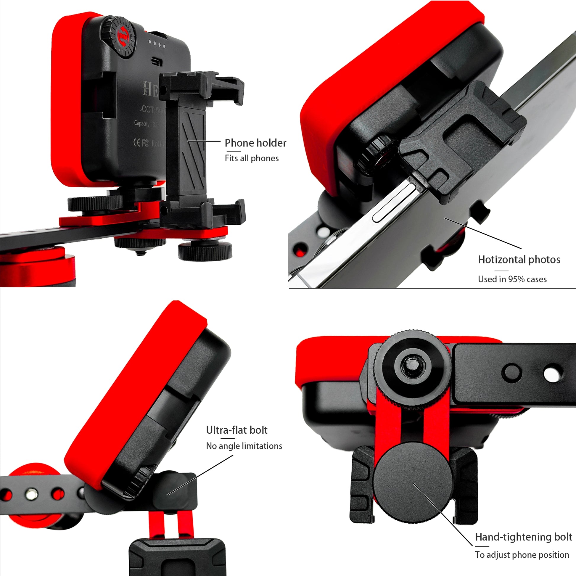 滑り止めハンドルと電話クリップにより、どの電話でも簡単に使用でき、軽量でコンパクトなデザインは外出先での写真撮影に最適です。